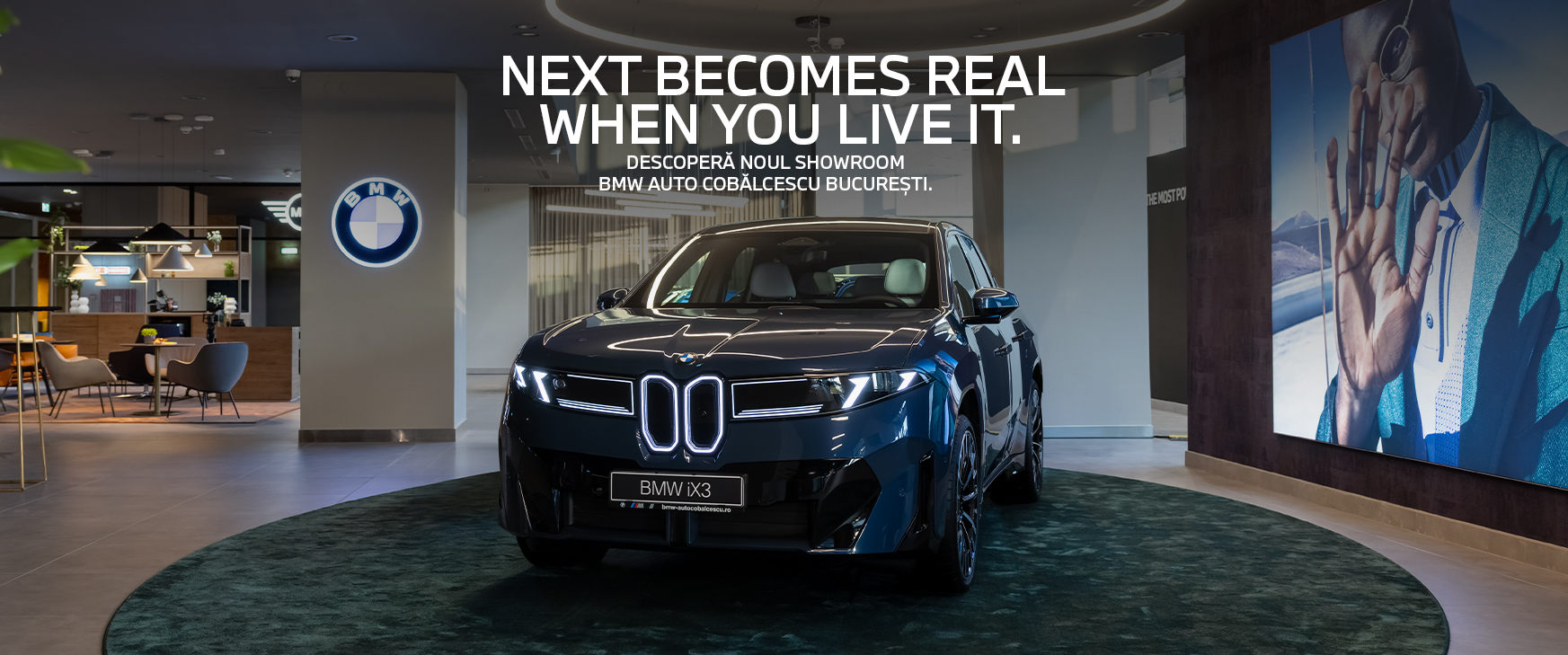 DRUMUL TĂU ARE PRIORITATE. MODELE BMW CU LIVRARE DIN STOC. BMW Auto Cobălcescu Află mai mult ALEGE MODELUL TĂU BMW ELECTRIC. OFERTE eBOOST CU 0%* DOBÂNDĂ ȘI OPȚIUNI DE LEASING OPERAȚIONAL. BMW Auto Cobălcescu Află mai mult ALEGE PUTEREA M. MODELE BMW M CU LIVRARE IMEDIATĂ. BMW Auto Cobălcescu Află mai mult BMW X5. LEGACY LIMITED EDITION. 68.900 EURO + TVA CU 0%* DOBÂNDĂ. BMW Auto Cobălcescu Află mai mult BMW X6. UNTAMED EDITION. 72.900 EURO + TVA CU 0%* DOBÂNDĂ. BMW Auto Cobălcescu Află mai mult AUTOMOBILE BMW CU LIVRARE IMEDIATĂ DIN STOC BUCUREȘTI. TU ALEGI MODELUL BMW PREFERAT, IAR NOI TE SUSȚINEM CU VALOAREA TVA. BMW Auto Cobălcescu București Află mai mult BEST DEAL. STOC LIMITAT LA BMW AUTO COBĂLCESCU. BMW Auto Cobălcescu Află mai mult AUTOMOBILE BMW CU LIVRARE IMEDIATĂ DIN STOC PITEȘTI. TU ALEGI MODELUL BMW PREFERAT, IAR NOI TE SUSȚINEM CU VALOAREA TVA. BMW Auto Cobălcescu Pitești Află mai mult DINAMISM ȘI SPORTIVITATE FĂRĂ LIMITE. MODELE BMW Seria 3 DIN STOC CU LIVRARE RAPIDĂ. BMW Auto Cobălcescu Pitești Află mai mult BMW X1. MOMENTUM LIMITED EDITION. 36.900 EURO + TVA CU 0%* DOBÂNDĂ. BMW Auto Cobălcescu Află mai mult PRIMUL SERVICE BMW COMPLET DIGITAL. BMW AUTO COBĂLCESCU DIGITAL SERVICE ONLY. BMW Auto Cobălcescu Află mai mult Previous Next NOUL BMW iX3. Află mai mult PRIMUL BMW DIGITAL SERVICE ONLY DIN LUME. Află mai mult Serie Caroserie Descoperă modelele i X M 8 7 5 4 3 2 1 Z PHEV Sports Activity Coupé Sedan Touring Coupé Sports Activity Vehicle Cabriolet Tourer Hatch Modelele BMW Descoperă toate modelele BMW iX De la 81.932 € Preţul total de vânzare diferă în funcţie de regiune. Preţurile specifice fiecărei regiuni pot fi găsite în secţiunea Configurare şi preţ a website-ului. Cere o ofertă Programează un test drive BMW iX M70 xDrive De la 122.927 € Preţul total de vânzare diferă în funcţie de regiune. Preţurile specifice fiecărei regiuni pot fi găsite în secţiunea Configurare şi preţ a website-ului. Cere o ofertă Programează un test drive BMW i7 De la 109.361 € Preţul total de vânzare diferă în funcţie de regiune. Preţurile specifice fiecărei regiuni pot fi găsite în secţiunea Configurare şi preţ a website-ului. Cere o ofertă BMW i7 M70 xDrive De la 173.145 € Contactează-ne pentru o ofertă personalizată. Cere o ofertă Programează un test drive BMW i5 Touring De la 71.936 € Preţul total de vânzare diferă în funcţie de regiune. Preţurile specifice fiecărei regiuni pot fi găsite în secţiunea Configurare şi preţ a website-ului. Solicită ofertă Programează un test drive BMW i5 M60 xDrive Touring De la 101.626 € Preţul total de vânzare diferă în funcţie de regiune. Preţurile specifice fiecărei regiuni pot fi găsite în secţiunea Configurare şi preţ a website-ului. Solicită ofertă Programează un test drive BMW i5 De la 69.913 € Preţul total de vânzare diferă în funcţie de regiune. Preţurile specifice fiecărei regiuni pot fi găsite în secţiunea Configurare şi preţ a website-ului. Cere o ofertă Programează un test drive BMW i5 M60 xDrive De la 99.603 € Preţul total de vânzare diferă în funcţie de regiune. Preţurile specifice fiecărei regiuni pot fi găsite în secţiunea Configurare şi preţ a website-ului. Cere o ofertă Programează un test drive BMW i4 Gran Coupé De la 50.159 € Preţul total de vânzare diferă în funcţie de regiune. Preţurile specifice fiecărei regiuni pot fi găsite în secţiunea Configurare şi preţ a website-ului. Cere o ofertă Programează un test drive BMW i4 M50 xDrive Gran Coupé De la 68.485 € Preţul total de vânzare diferă în funcţie de regiune. Preţurile specifice fiecărei regiuni pot fi găsite în secţiunea Configurare şi preţ a website-ului. Cere o ofertă Programează un test drive BMW iX1 De la 46.291 € Preţul total de vânzare diferă în funcţie de regiune. Preţurile specifice fiecărei regiuni pot fi găsite în secţiunea Configurare şi preţ a website-ului. Cere o ofertă Programează un test drive BMW iX2 De la 47.660 € Preţul total de vânzare diferă în funcţie de regiune. Preţurile specifice fiecărei regiuni pot fi găsite în secţiunea Configurare şi preţ a website-ului. Cere o ofertă Programează un test drive BMW iX3 Cere o ofertă Programează un test drive BMW XM De la 172.610 € Preţul total de vânzare diferă în funcţie de regiune. Preţurile specifice fiecărei regiuni pot fi găsite în secţiunea Configurare şi preţ a website-ului. Cere o ofertă Programează un test drive BMW X7 De la 99.841 € Preţul total de vânzare diferă în funcţie de regiune. Preţurile specifice fiecărei regiuni pot fi găsite în secţiunea Configurare şi preţ a website-ului. Cere o ofertă Programează un test drive BMW X7 M60i xDrive De la 128.044 € Preţul total de vânzare diferă în funcţie de regiune. Preţurile specifice fiecărei regiuni pot fi găsite în secţiunea Configurare şi preţ a website-ului. Cere o ofertă Programează un test drive BMW X6 De la 88.179 € Preţul total de vânzare diferă în funcţie de regiune. Preţurile specifice fiecărei regiuni pot fi găsite în secţiunea Configurare şi preţ a website-ului. Cere o ofertă Programează un test drive BMW X6 M De la 148.929 € Preţul total de vânzare diferă în funcţie de regiune. Preţurile specifice fiecărei regiuni pot fi găsite în secţiunea Configurare şi preţ a website-ului. Cere o ofertă Programează un test drive BMW X5 xDrive50e De la 95.022 € Preţul total de vânzare diferă în funcţie de regiune. Preţurile specifice fiecărei regiuni pot fi găsite în secţiunea Configurare şi preţ a website-ului. Cere o ofertă Programează un test drive BMW X5 De la 83.479 € Preţul total de vânzare diferă în funcţie de regiune. Preţurile specifice fiecărei regiuni pot fi găsite în secţiunea Configurare şi preţ a website-ul