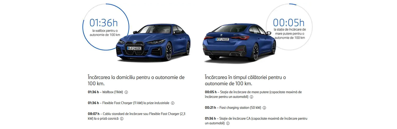 ÎNCĂRCARE LA DOMICILIU. ÎNCARCĂ-ȚI AUTOMOBILUL ELECTRIC LA DOMICILIU, FLEXIBIL ȘI CONFORTABIL. * Imagini cu titlu de prezentare. Previous Next Încărcarea automobilelor electrice și a celor plug-in hybrid, în funcţie de puterea lor de încărcare. Cu până la 11 kW cu Flexible Fast Charger conectat la o priză, respectiv o priză industrială CEE, sau cu până la 22 kW rapid și sigur, la un BMW Wallbox. De asemenea, poți încărca automobilul în orice moment folosind o priză casnică. Cu toate acestea, îți recomandăm să folosești BMW Wallbox sau Flexible Fast Charger. Soluții de încărcare pentru casa ta. BMW Wallbox Plus. Practic, eficient din punctul de vedere al costurilor și compact: încărcarea la domiciliu. BMW Wallbox încarcă în siguranță modelul tău BMW electric sau plug-in hybrid. Este ușor de utilizat, iar cablurile se gestionează confortabil cu ajutorul fișei și al suportului de perete. Încarcă cu până la 22 kW, în funcție de tipul de automobil.[3] Serviciu de instalare BMW Wallbox Plus. Atunci când cumperi un BMW Wallbox Plus, experţii noştri tehnici vor avea grijă de instalare și asamblare. De asemenea, aceştia vor instala și priza industrială pentru BMW Flexible Charger. Te vor ajuta cu plăcere cu orice alte întrebări. Aplicația My BMW. Aplicaţia My BMW[4] te conectează rapid la automobilul tău. Vei primi toate informaţiile despre stadiul de încărcare, autonomia disponibilă, costuri, durata de încărcare sau cea mai apropiată staţie de încărcare pentru automobilul tău BMW electric direct pe smartphone-ul tău. Poţi să încerci funcţiile Aplicaţiei My BMW folosind versiunea demonstrativă gratuită, chiar dacă nu ai un automobil electric. Trebuie doar să descarci aplicația, să te conectezi și să o încerci. Încărcător BMW flexibil rapid. BMW Flexible Fast Charger este cea mai rapidă soluţie de încărcare pentru încărcarea mobilă şi flexibilă la diferite tipuri de prize. Îl poţi folosi la o priză casnică cu o putere maximă de încărcare de 2,3 kW. Sau la o priză industrială, o priză albastră CEE cu până la 11 kW.[3] Cablul de încărcare inclus are 6 metri lungime și este etanş. Previous Next Instrucțiuni de instalare și utilizare. Informaţii despre BMW Wallbox Plus (gen 4). Instrucțiuni Informaţii despre BMW Flexible Fast Charger. Instrucțiuni Informaţii despre BMW Wallbox (gen 3). Instrucțiuni Întrebări frecvente. Cum îmi încarc automobilul electric acasă? Îţi poţi încărca automobilul la orice priză casnică disponibilă. Cu ajutorul unui cablu adaptor care este disponibil separat, poți utiliza Flexible Fast Charger și la alte prize industriale (de mare putere) cu o putere de încărcare de până la 11 kW. Curentul alternativ (c.a.) solicită mai puțin bateria, asigurând o durată de viață mai lungă. Cu toate acestea, dacă ești presat de timp atunci când călătorești, poți încărca și cu curent continuu (c.c.) la o stație de încărcare rapidă, obținând o autonomie suficientă pentru automobilul tău electric într-un timp scurt. Bucură-te de o încărcare convenabilă, rapidă și sigură cu un Wallbox, care face procesul de încărcare semnificativ mai rapid în comparație cu o priză casnică. BMW Wallbox Plus este cea mai sigură și mai convenabilă soluţie de încărcare la domiciliu. Pentru utilizare, este necesar Bluetooth și aplicația My BMW. Îl poți accesa și controla prin intermediul aplicației, iar cablul poate fi depozitat convenabil pe colierul furnizat. Încarcă un automobil electric sau plug-in hybrid cu o putere de încărcare de până la 22 kW. Disponibilitatea acestui serviciu depinde de țară și automobil.[3] Cine îmi va instala la domiciliu panoul BMW Wallbox Plus sau o priză industrială pentru Flexible Fast Charger? Nu trebuie decât să rezervi serviciile de instalare atunci când faci comanda de Wallbox. În plus, poţi rezerva serviciile de instalare pentru o priză industrială puternică, dacă doreşti să utilizezi Flexible Fast Charger cu adaptorul adecvat la domiciliu. Ce trebuie să iau în considerare atunci când încarc un automobil complet electric? Pentru a optimiza durata de viață a bateriei de înaltă tensiune din automobilul tău electric BMW, BMW recomandă menținerea unei stări de încărcare între 10 și 80% în utilizarea zilnică. Încărcarea unui automobil electric cu curent alternativ (c.a.) poate dura mai mult, în funcție de infrastructura disponibilă și de capacitatea bateriei tale de înaltă tensiune. Pe de altă parte, încărcarea cu curent continuu (c.c.) poate fi semnificativ mai rapidă. În utilizarea zilnică, ar trebui să acorzi prioritate încărcării la stațiile de încărcare cu curent alternativ, Wallbox-uri și stații de încărcare cu curent continuu cu o putere de încărcare mai mică, de până la 100 kW. Acest lucru optimizează atât eficiența încărcării, cât și durata de viață a bateriei automobilului tău electric BMW. Bucură-te de o încărcare convenabilă, rapidă și sigură cu un Wallbox, care face procesul de încărcare semnificativ mai rapid în comparație cu o priză casnică. BMW Wallbox are o putere de încărcare de până la 22 kW.[3] Cât de frecvent trebuie să încarci acasă un automobil electric? Pentru a optimiza durata de viață a bateriei de înaltă tensiune din automobilul tău electric BMW, BMW recomandă menținerea unei stări de încărcare între 10 și 80% în utilizarea zilnică. Poți seta încărcarea dorită (de ex. 80%) în sistemul de operare BMW. Dacă ai planificat o călătorie mai lungă, poți încărca până la >80%. În acest caz, îți recomandăm să încarci automobilul chiar înainte de a porni la drum. Efectuarea mai frecventă a unor cicluri de încărcare mai scurte este mai avantajoasă pentru durata de viață a bateriei de înaltă tensiune decât încărcarea și descărc